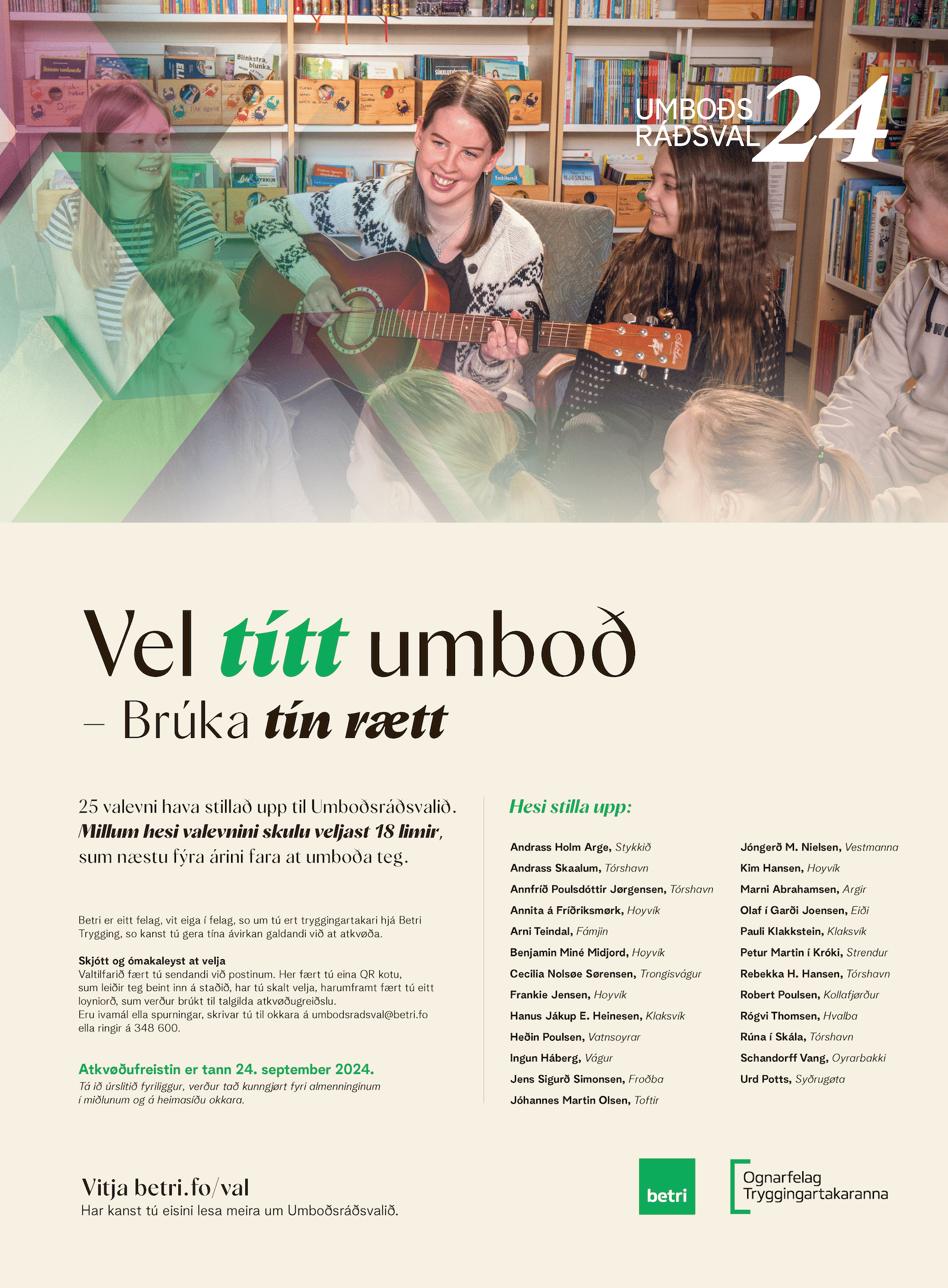 25 valevni bjóða seg fram, nú val til Umboðsráðið er.